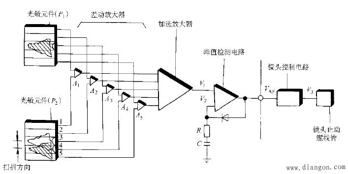 例 随着微电子技术的发展,人们创造性地使照相机中的调光圈、测焦距、控制曝光时间、取景、卷片、识别胶圈型号、迅速冲印等功能实现了自动化,采用传感器及集成电路的自动照相机成为照相机的主流产品。以自动对焦为例,其工作原理框图如图4所示。