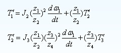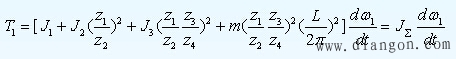 (3)折算到轴Ⅰ上的总转动惯量 把式(2)、(3)、(4)代入式(1)(2)(3),消去中间变量并整理后求出电机输出的总转矩