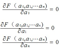 式中:a0,a1,a2,a3,…,an为待定常数 (3)求解待定常数a0,a1,a2,a3,…,an 。根据最小二乘法来确定待定常数的基本思想是,由多项式方程确定的各个xi(ui)值与各个点的标定值xi之均方差应最小,即: