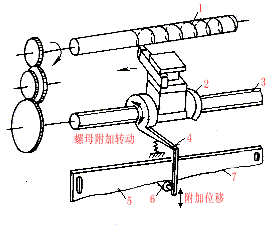 1)减少传动链中传动件数目,缩短传动链长度。 2)采用降速传动链,以减小传动链中各元件对末端元件转角误差的影响。 3)提高传动元件,特别是末端传动元件的制造精度和装配精度。 4)采用误差补偿的方法。 如图所示为根据误差补偿原理设计的高精度螺纹加工机床机械式校正装置。根据测量被加工工件1的导程误差,设计出校正尺5上的校正曲线7。校正尺5固定在机床床身上。加工螺纹时,机床传动丝杠带动螺母2及与其相固联的刀架和杠杆4移动。同时,校正尺5上的校正误差曲线7通过触头6、杠杆4使螺母2产生一附加运动,从而使刀架得到附加位移,以补偿传动误差。 采用机械式的校正装置只能校正机床静态的传动误差。如果要校正机床静态及动态传动误差,则需要采用计算机控制的传动误差补偿装置。  图 丝杠加工误差补偿装置 1-工件 2-螺母 3-母丝杠 4-杠杆 5-校正尺 6-触头 7-校正曲线 |