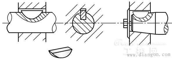 1.2半圆键联接:它靠键的两个侧面传递转矩,故其工作面为两侧面。上键槽用尺寸与半圆键相同的圆盘铣刀加工,因而键在槽中能绕其几何中心摆动,以适应轮毂槽由于加工误差所造成的斜度。
