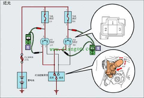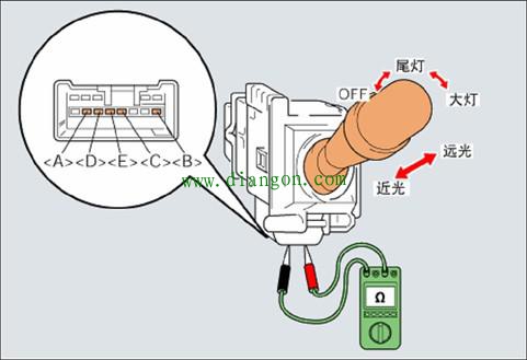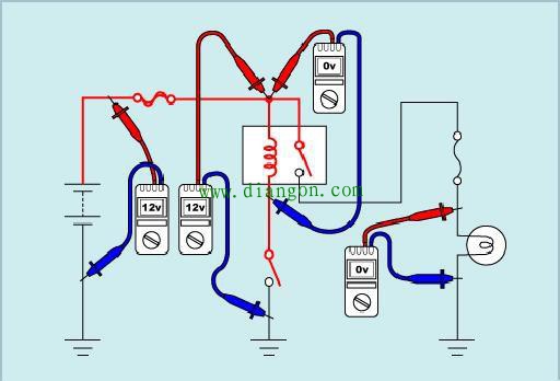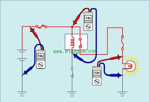 一种是利用万用表的电压档,沿着电路图中的线路分段用万用表检查电压或用试灯测试亮灭的情况;另一种方法是用万用表的电阻档测量相应导线的通断程度及搭铁情况,如图所示。