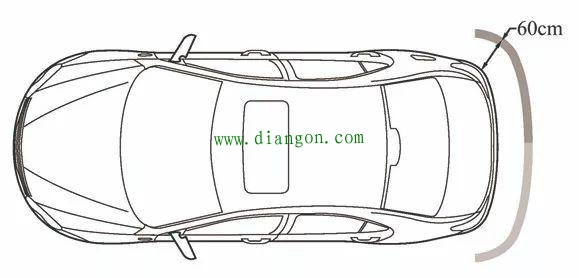 侧面两个传感器的检测范围是距离保险杠拐角处60cm 的区域。