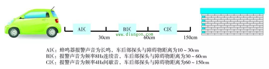 当探测到的距离在侧部小于20cm,或在中部正后方小于30cm时,声响信号将变为持续音以避免碰撞保险杠。