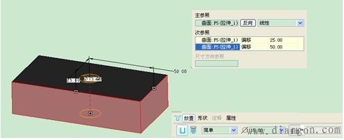 建立孔特征,单击工具栏中“ ”,依次定义孔的放置平面、设置孔的位置和大小及深度进而确定孔的特征。 1.普通孔 (1)线性定位:选择两个参照边后参照平面作为参照,并分别指定圆孔与参照的距离来产生孔特征,如图3。 |