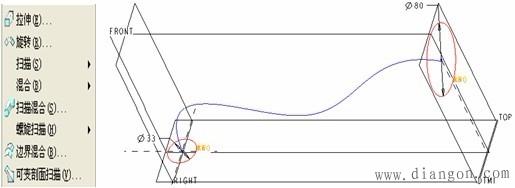 (2)利用“草绘工具”绘制扫描轨迹和草绘截面,如图3。