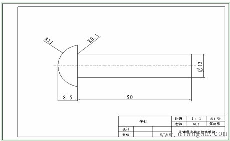 | 例1:建立标准件半圆头铆钉GB863.1-86-12×50“公称直径d=12mm 长度l=50mm 材料为ML2 不经过表面处理”,如图2。 |