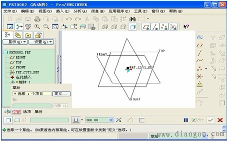 (1)新建一个文件 ,类型为零件,子类型为实体,模板为mmn_part_solid。 (2)单击旋转工具 ,弹出操控板,单击“放置”|“定义”,如图3。 |