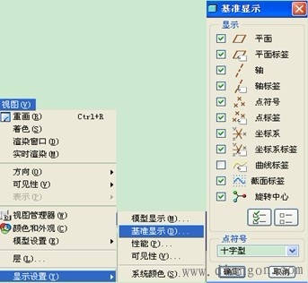 2.单击“视图”|显示设置|基准显示,弹出“基准显示”对话框,勾选显示的项目进行控制,如图1。