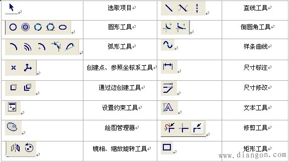 草绘工具主要有:草绘器、草绘器工具栏、目的管理器。 1. 草绘器 Pro/ENGINEER草绘器主要用于简化草绘图面,提升草图绘制效率。涵盖以下四种显示开关: ―― 切换尺寸显示的开关 ――切换约束显示的开关 ――切换栅格显示的开关 ――切换剖面顶点显示的开关 2. 草绘器工具栏 Pro/ENGINEER草绘器工具栏功用如表1。表1 草绘器工具栏 3.目的管理器 单击“草绘”菜单栏,单击“目的管理器”,会弹出如图1的菜单管理器,请用户注意此时的草绘器工具栏将会自动关闭,单击所需要的子选项即可操作。 |