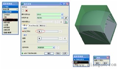 (1)设定坐标系 操作过程如下设置: 制造设置 操作 加工零点 选取 完成 ,如图5所示。 |