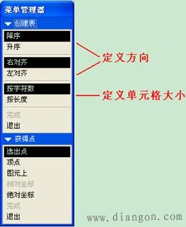 2.弹出“菜单管理器”,设置“创建表”如图2。
