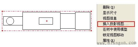 (2)选中已经建立的“TOP”视图,此时该视图周围会出现红色的边框,单击鼠标右键,选择“插入投影视图”,如图3。
