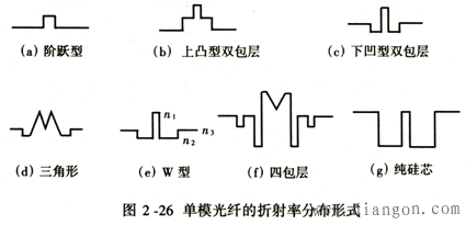 光纤损耗对最大中继距离的限制,可通过光纤放大器得以解决(关于光纤放大器的问题将在本书第七章中介绍);而光纤色散问题,则根据现代光纤通信技术的要求,采用一些特殊光纤得以改善,本节将从物理概念上介绍几种新型光纤的结构及工作原理。
