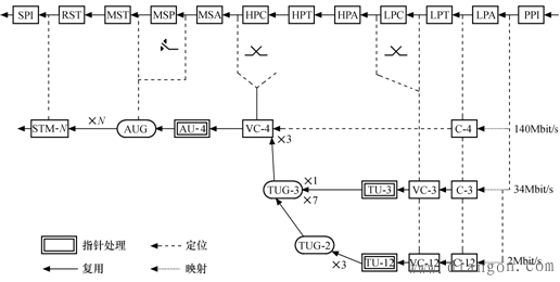 | 图1 我国目前采用的SDH复用映射结构示意图 |
