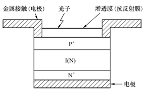 为了改善光电检测器的响应速度和转换效率,显然,适当加大耗尽层宽度是有利的,为此在制造时,在P型材料和N型材料之间加一层轻掺杂的N型材料,称为I(Intrinsic,本征的)层,加图1所示.由于是轻掺杂,故电子浓度很低,经扩散作用后可形成一个很宽的耗尽层,
