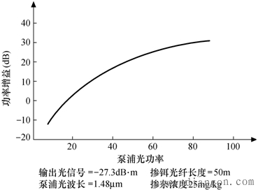 图7-5 掺铒光纤放大器功率增益与泵浦功率间的关系