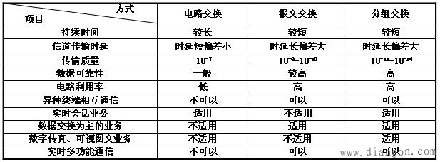 由表可知分组交换适于报文短的数据通信;电路交换适于报文长且数据量大的数据通信。