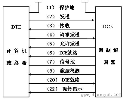 规定了DTE和DCE之间各个信号线的 连接情况及其功能和作用。