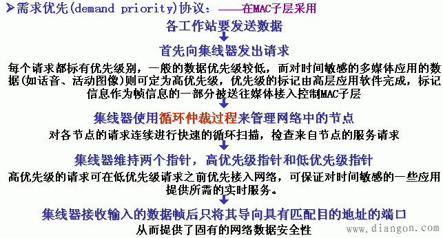 100BASE-VG采用星形拓扑结构,由中央集线器对全网实行集中式访问控制。