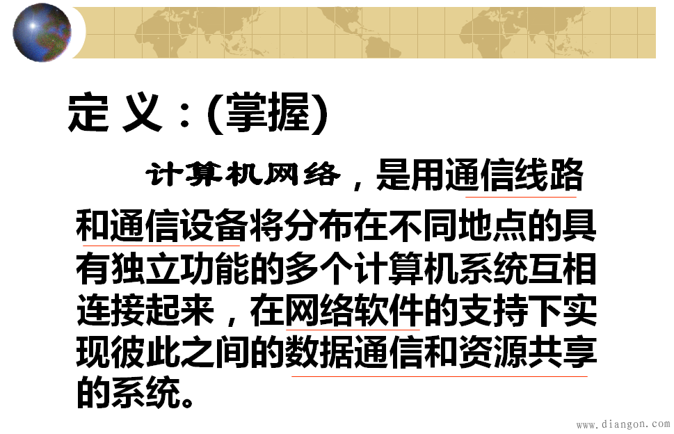 1)通信线路和通信设备,是网络世界的物理载体,在计算机网络中使用的线路和设备,将在第三章中详细介绍;