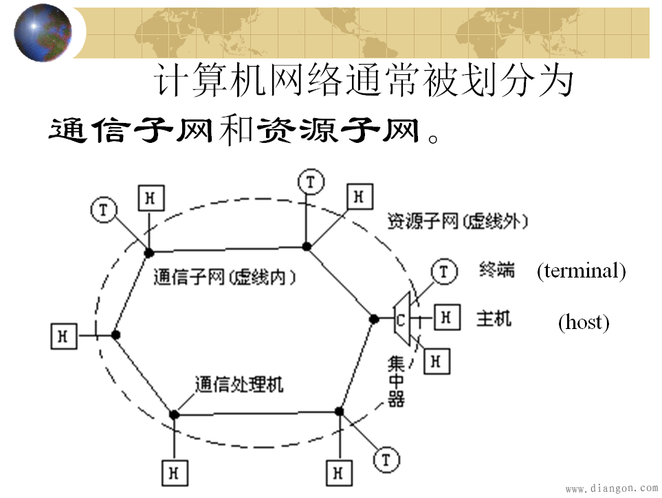 计算机网络通常被划分为通信子网和资源子网。通信子网提供信息传输,资源子网提高共享资源。