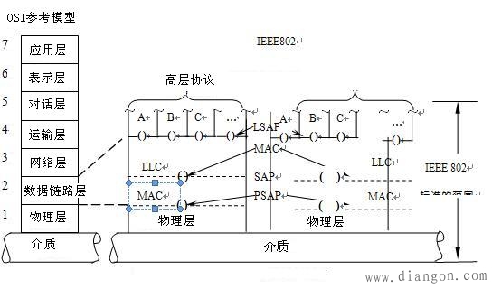 从层次化的网络体系结构观点来看,局域网并没有实现OSI或TCP/IP参考模型定义的所有层次,本身只实现了物理层、数据链路层和网络层低三层的功能。在两个参考模型中,网络层(互联层)的功能都可以简单归纳为:主机之间的路由,也就是为发送方发出的数据包寻找到达目的接受方的通信路径。由于局域网中网络拓扑结构简单,为了通信的简单性与高效性,局域网中,这一层几乎是空的,一般都不考虑。IEEE802协议系列只包含了两层:数据链路层和物理层。
