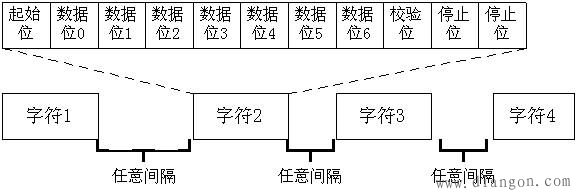 异步传输方式并不要求发送方和接收方的时钟完全一样,字符与字符间的传输是异步的。