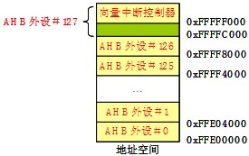 AHB和VPB AHB(先进的高性能总线)和VPB(VLSI外设总线)外设区域都为2M字节,可各分配128个外设。每个外设空间的规格都为16K字节,这样就简化了每个外设的地址译码。 注意:AHB和VPB外设区域中不管是字还是半字,都是一次性访问。例如不可能对一个字寄存器的最高字节执行单独的读或写操作 外设存储器映射