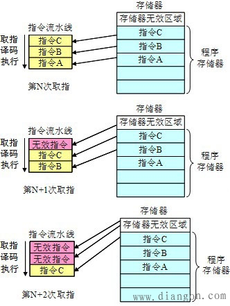 注意: 只有在试图执行从非法地址取指的指令时,ARM才会将预取指中止标志与相关的指令(没有意义的指令)一起保存到流水线并对中止进行处理。当代码在非常靠近存储器边界执行时,防止了由预取指所导致的意外中止。 预取指中止和数据中止异常举例