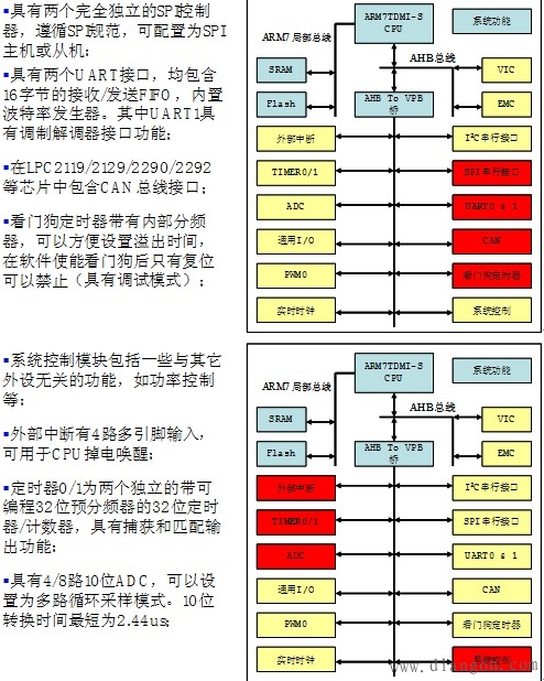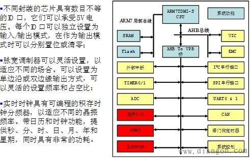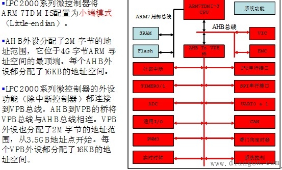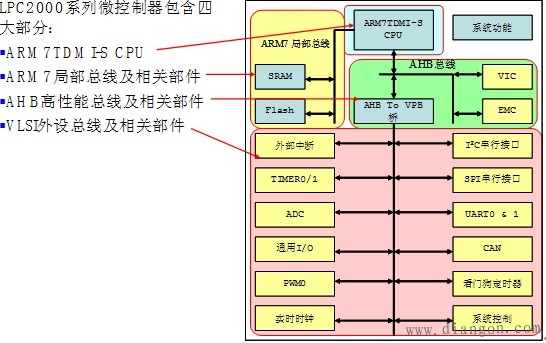 LPC2000系列微控制器基于ARM7TDMI-S CPU内核。支持ARM和Thumb指令集,芯片内集成丰富外设,而且具有非常低的功率消耗。使该系列微控制器特别适用于工业控制、医疗系统、访问控制和POS机等场合。