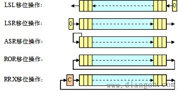 关于“Rm――寄存器方式”: 在寄存器方式下,操作数即为寄存器的数值。 例如: SUB R1,R1,R2 MOV PC,R0 关于“Rm,shift――寄存器移位方式”:将寄存器的移位结果作为操作数,但Rm值保持不变,移位方法如下: