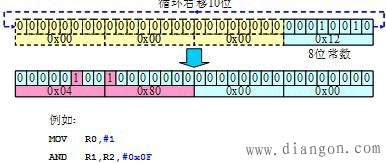 灵活的使用第2个操作数“operand2”能够提高代码效率。它有如下的形式: (1)#immed_8r――常数表达式; (2)Rm――寄存器方式; (3)Rm,shift――寄存器移位方式; 关于“#immed_8r――常数表达式” 该常数必须对应8位位图,即一个8位的常数通过循环右移偶数位得到。 |