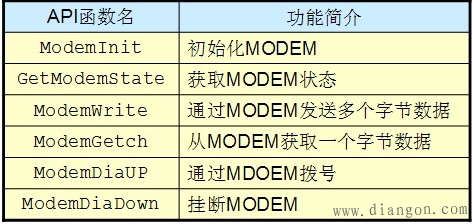 MODEM接口软件模块包括的API函数如下所示:
