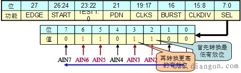 START:该字段用于控制AD转换的启动方式,该字段只有在BURST为0时有效。