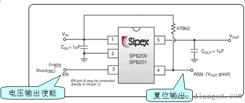 SP6200/6201――带复位输出的 LDO调节器 : 适用于要求高精度、快速操作和方便使用的应用; 极低的关断电流:最大为1uA; 低压差:160mV@100mA。输出电压高精度: 2% ; 逻辑控制的电子使能; 复位输出(VOUT良好); 1uF的陶瓷电容就可保持器件无条件稳定工作。