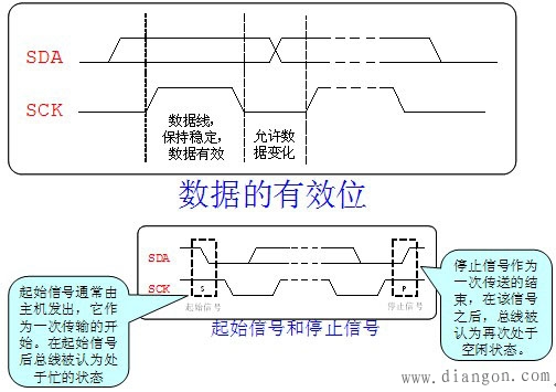 ――名词解释 发送器:本次传输中发送数据到总线的器件; 接收器:本次传输中从总线接收数据的器件; 主机:初始化发送、产生时钟信号和终止发送的器件,它可以是发送器或接收器。主机通常是微控制器; 从机:被主机寻址的器件,可以是发送器或接收器。
