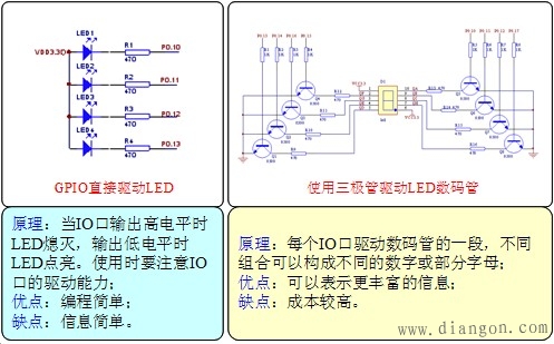 本文介绍LPC2000系列微控制器片内外设的接口设计,主要介绍以下几种: GPIO(通用I/O) UART、MODEM I2C SPI GPIO外设接口设计 LPC2000系列的绝大多数GPIO为真正的全双向I/O口,可以独立控制每一根I/O口线的状态是输入还是输出,绝大多数GPIO的输出为推挽输出,可以独立控制每一根I/O口的输出状态。虽然LPC2000系列的I/O电压为3.3V,GPIO的输出最高为I/O口电源电压,但绝大多数GPIO能够承受5V电压的输入,绝大多数GPIO作为输入时是处于高阻状态。 因为LPC2000系列的GPIO有以上特性,所以可以用它们(通过程序)模拟很多器件的时序达到控制相应器件的目的。 GPIO外设接口设计 ――按键 GPIO外设接口设计 ――LED控制