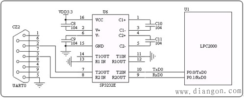 如果要使用UART0与RS232接口的设备进行基本的通讯,那么就需要一个RS232转换器将TTL电平转换成RS232电平。