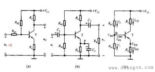 图AB均有相同的等效直流电路。为了稳定Q工作点,通常要满足I1>>IBQ而使得 VBQ =Rb1*VCC/ Rb2+ Rb1 通过这样设计使得无论环境温度怎么变化,VBQ将基本保持不变。 当温度升高时ICE变大,而使得VEQ变大,因VBE=VBQ VEQ所以VBE将变小;由于VBE变小故IBE也将变小,从而ICE将变小。 RE的使用将直流负反馈引入使得Q工作点越稳定,一般而言是反馈越强,Q点越稳定。 其他稳定Q工作点电路