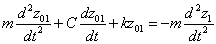 在许多情况下,例如惯性式测振传感器,振动系统的振动是由载体的运动所引起的。如图2所示。设载体的绝对位移为Z1,检测质量块m的绝对位移Ζ0,则质量块的运动方程为