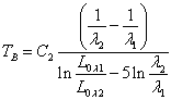 绝对黑体,对应于波长λ1与λ2的光谱辐射亮度之比R,可用下式表示: