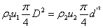 为截面1和2上流束直径。