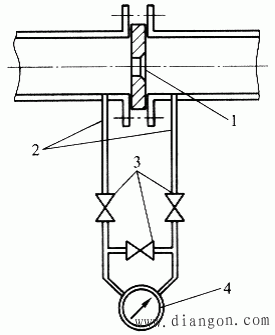 1-节流元件;2-引压管路;3-三阀组;4-差压计