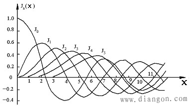 | 图4.5.5 第一类贝塞尔函数曲线 |