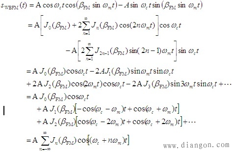 | 利用贝塞尔函数的性质和两个表达式,整理得宽带调频信号的时域表示式 |