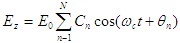 当第n个入射波的入射角是 时 设发射信号是垂直极化,并且只考虑垂直波时,场强Ez可以表示为 |