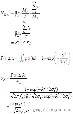 六、衰落特性 通常用衰落深度、衰落速率、衰落持续时间、电平通过率等特征量来描述信道的衰落特性。 1、电平通过率:单位时间内信号包络以正斜率通过某一规定电平值R的平均次数。 2、平均衰落持续时间:信号包络低于某个给定电平值的概率与该电平所对应的电平通过率之比。 |