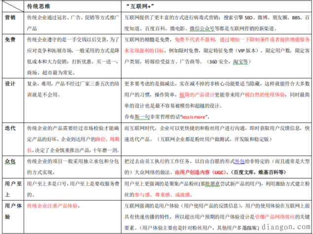 2015年的年会后,“互联网+”这个词越来越火热。“互联网+”频频出现在各大媒体中,近期在一些新媒体,自媒体推送的文章中,有关“互联网+”的文章也是越来越多。我对“互联网+”这个词有点印象是两会的时候,百度的李彦宏说了这么一句:“过去一两年互联网和很多产业一旦结合的话,duang,就变成了一个化腐朽为神奇的东西。”两个热词在一起,就记住了。 从表象上看,“互联网+”任意行业,都会在此行业中掀起一阵惊涛巨浪,重洗了行业的牌。“互联网+”真的有这么神奇吗?至少从已经被“互联网+”的行业来说,确实有点所到之处,风云变幻的景象。在我以前的看法中,也认为“互联网+”是一种新的生产力,就像蒸汽机产生的动力导致了第一次工业革命,电力的应用造成了第二次工业革命,电脑的出现发生了第三次工业革命。而快速发展的“互联网+”将会为每个行业提供一个牛逼的大脑(“互联网+”为大数据提供了源源不断的营养,而人工智能必然会随大数据一起发展),所以,第四次工业革命是想躲都躲不了,想买都没法慢下来。事实上,“互联网+”已不仅仅是引起第四次工业革命那么简单,对整个社会的政治、经济、文化都引起了巨大的变化。 而作为已经属于传统行业的工业生产制造以及为工业服务的自动化行业,“互联网+”会带来什么? 深处自动化行业,很能体会行业中各公司和从业人员的焦虑,在这股“互联网+”的浪潮中,变是早死,不变等死!在这几年,看到不同的公司都在用自己的方式面对这次逐渐到来的变革,有的公司选择在这次变革中赚够了养老金退休,有的公司选择了投石问路的变,有的公司选择了壮士断腕。 而从我自己的观察来看,却未看到真正有“互联网+”的自动化公司出现,+互联网的公司倒是不少。无外乎如下的一下表现: 1)以前放在企业内部的服务器,放到了公司自己的机房。就变成了云! 2)自动化的软件从传统的胖客户端,多增加了WEB展示和手机浏览。就变成了移动平台! 3)项目的一次费用变成了按年费收取。 类似的,就不一一列举了。 从这些变化来看,还是由进步的,毕竟各家都在亦步亦趋的学习互联网的某些新方式,但这种微小的量变恐怕等不到质变的那一天。而“互联网+”给各行各业带来的变化绝对不是这种表象的东西。更多的会是对企业的组织架构,管理制度,激励机制,商业模式等上带来的变化。 “互联网+”后,企业的变化是从上到下,从内到外的。下面仅从产品和市场的思维方式来对比一下传统VS“互联网+” |
