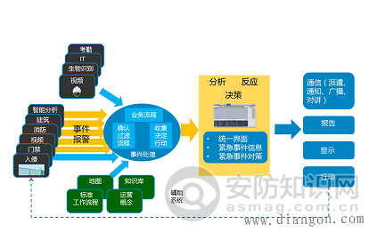 解决智能楼宇安防系统各子系统独立管理存在的诸多问题,最有效的方案就是通过智能楼宇安防集成管理系统实现各子系统的融合接入,各系统感知信息统一采集、传输、存储、关联、分析,并根据分析结果自动输出相应的显示信息与控制指令,进而实现智能楼宇安防系统的全流程闭环运行与管理,同时使系统的建设与运维变得极为简单,系统安全性、可靠性大幅提升。(如图三)